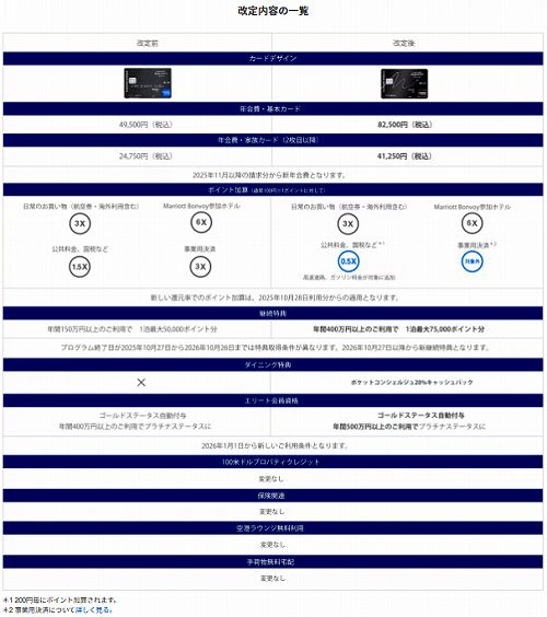 「マリオットボンヴォイアメックスプレミアム」の年会費等が改定されます。⇒公式サイト